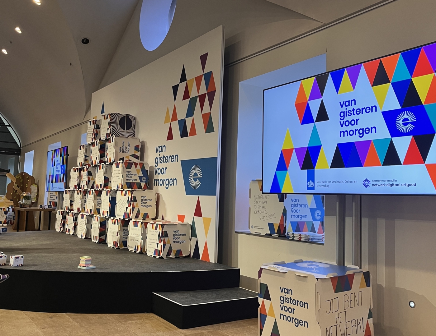 Op 27 en 28 november vond het congres Van Gisteren, voor Morgen van het Netwerk Digitaal Erfgoed (NDE) plaats in het H’Art Museum in Amsterdam. Het Mondriaan Fonds maakte de deelname mogelijk van 20 erfgoedstarters – professionals met minder dan 5 jaar werkervaring die via de open oproep Erfgoed Starters in loondienst waren genomen – aan dit tweedaagse congres, waar erfgoed, innovatie en ontmoeting samenkwamen. Hierdoor konden starters van onder meer het Fries Landbouwmuseum in Leeuwarden, Stichting Nationale Archeologiedagen in Almere, het Nationaal Onderwijsmuseum in Dordrecht en het Nationaal Archief van Aruba deelnemen aan het congres, de feestelijke avond en het diner met erfgoedprofessionals. Daarnaast organiseerde het Mondriaan Fonds voor hen een gezamenlijk ontbijt en netwerkmoment als aftrap van de dag.